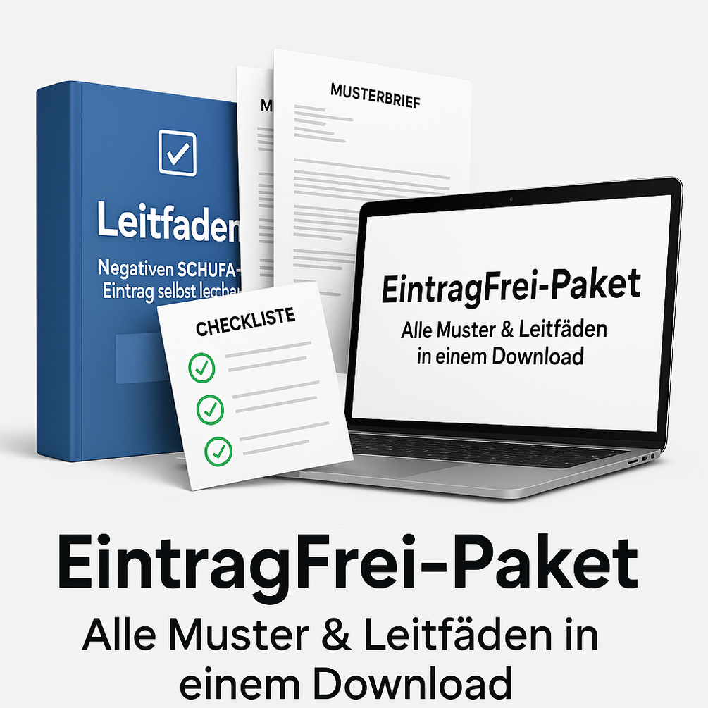 Mit dem EintragFrei-Paket erhältst du alles, was du brauchst, um deine SCHUFA gezielt und erfolgreich zu bereinigen: